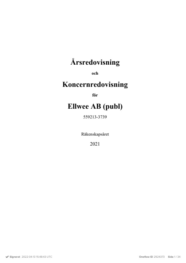 ELLWEE AB publicerade idag årsredovisningen för verksamhetsåret 2021. Årsredovisningen kan laddas ned på www.ellweegroup.com